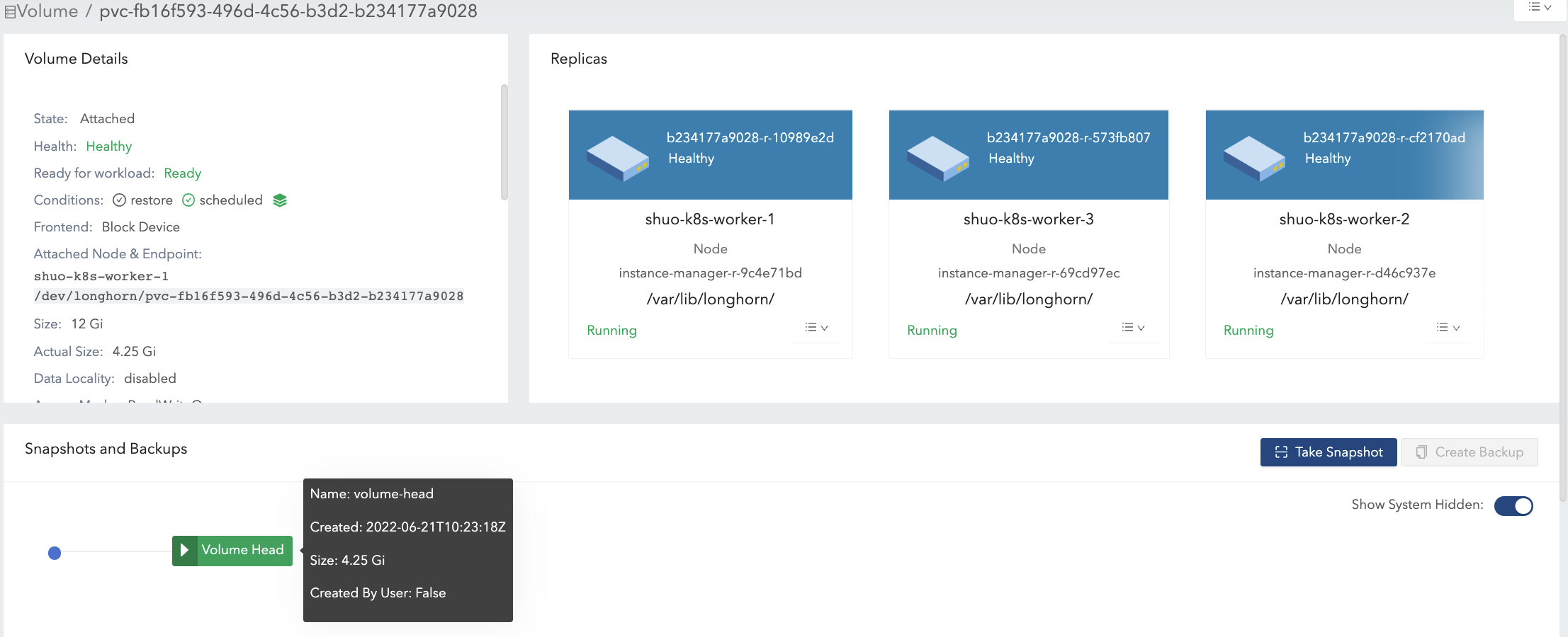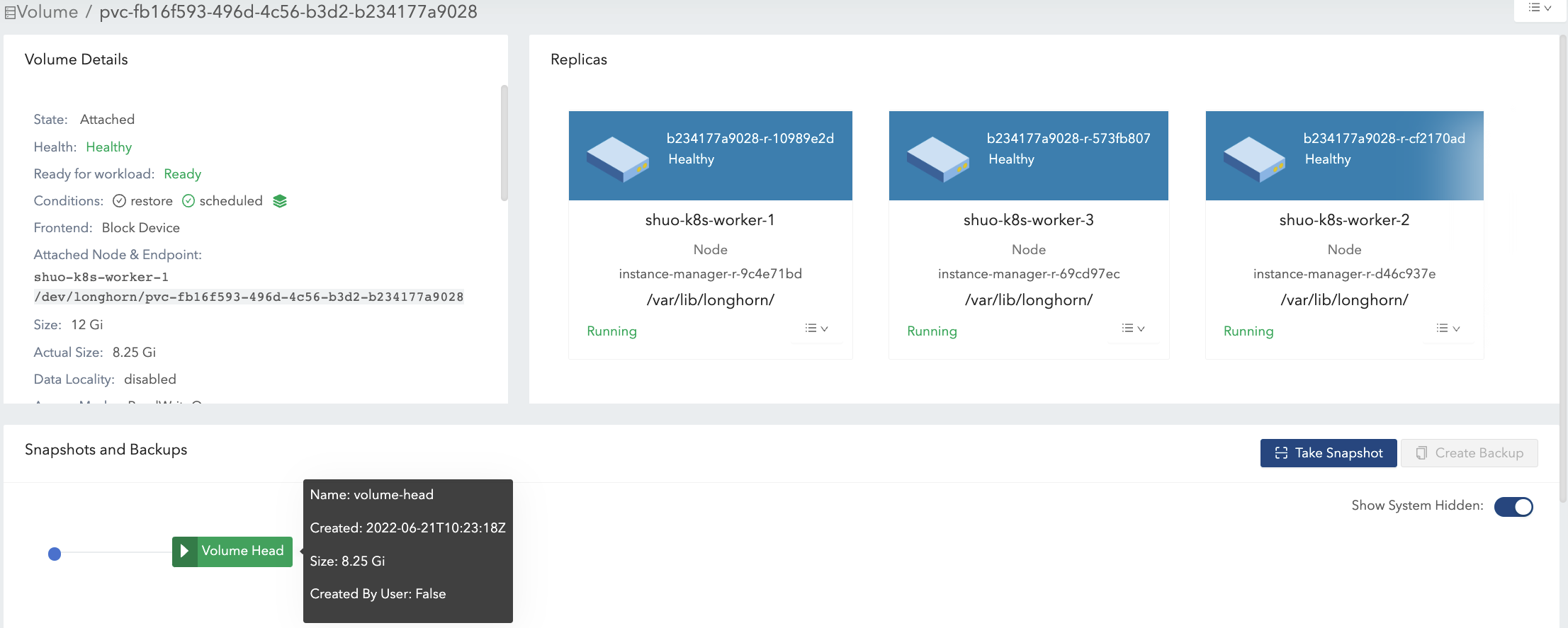 actual size, which is the size sum of the volume head and all snapshots, is possibly bigger than the size specified by users.Even if users will not take snapshots for volumes, there are operations like rebuilding, expansion, or backing up that would lead to system (hidden) snapshot creation. As a result, volume