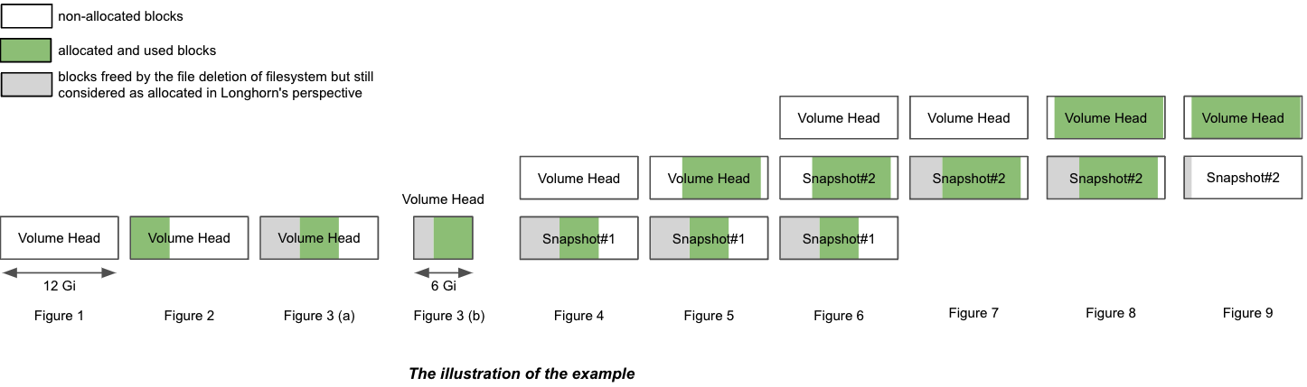 sizeis 12 Gi, theactual sizein the end would range from 4 Gi to 8 Gi since the filesystem may or maynot reuse the freed blocks. On the other hand, if the volume nominalsizeis 6 Gi, theactual sizeat the end would range from 4 Gi to 6 Gi, because the filesystem has to reuse the freed blocks in the 2nd round of writing. See Figure 3(b) of the illustration.Thus, allocating an appropriate nominal